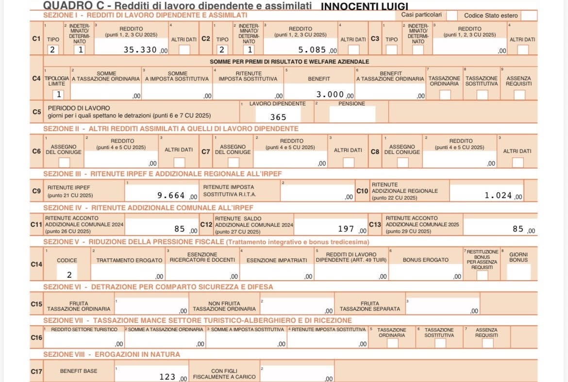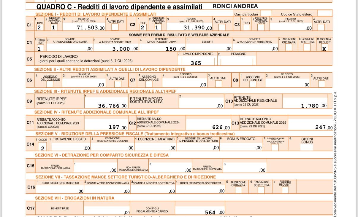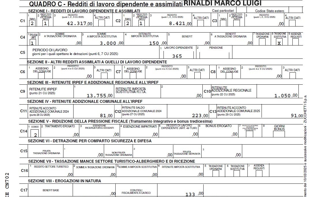 | Rinaldi Marcoluigi | FLAEI Piemonte | Estratto 730 |