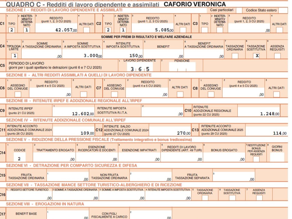 | Caforio Veronica | FLAEI Lazio | Estratto 730 |